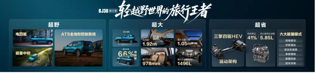 BJ30旅行家以“可城可野可家”的优势切入市场,旨在以10万级价格实现“专业越野能力、MPV级空间、A0级轿车油耗”的三重突破。