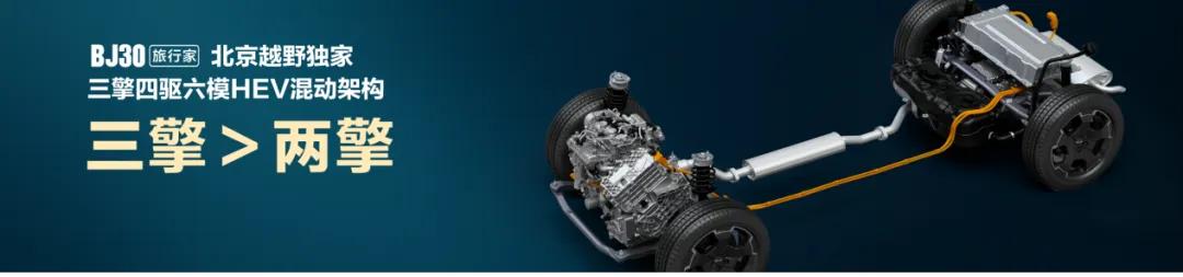 BJ30旅行家搭载超级混动系统,拥有同级最大的301kW综合功率和同级最大的685N·m综合扭矩;其搭载的电四驱系统响应速度仅需0.03秒,是机械四驱的3倍以上。