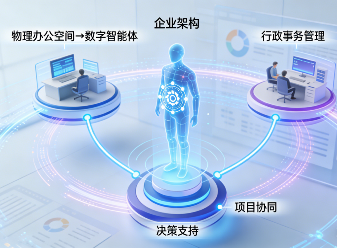 在这个模式下,“企业智能体”不仅将物理办公空间转化为可感知、可分析、可自主优化的数字智能体,更将深入渗透到企业的每一个业务环节,从日常的行政事务管理,到复杂的项目协同与决策支持,都能展现出前所未有的效率。