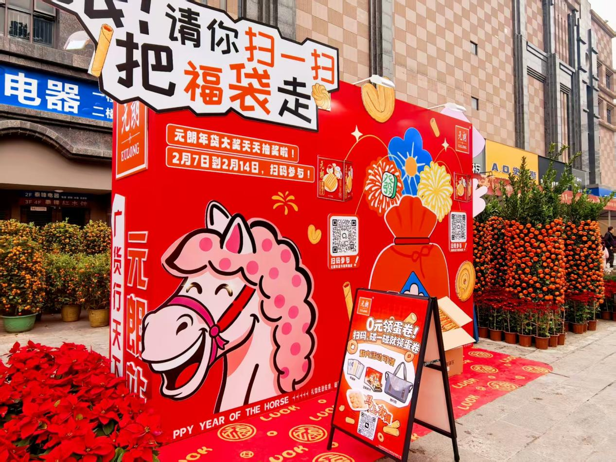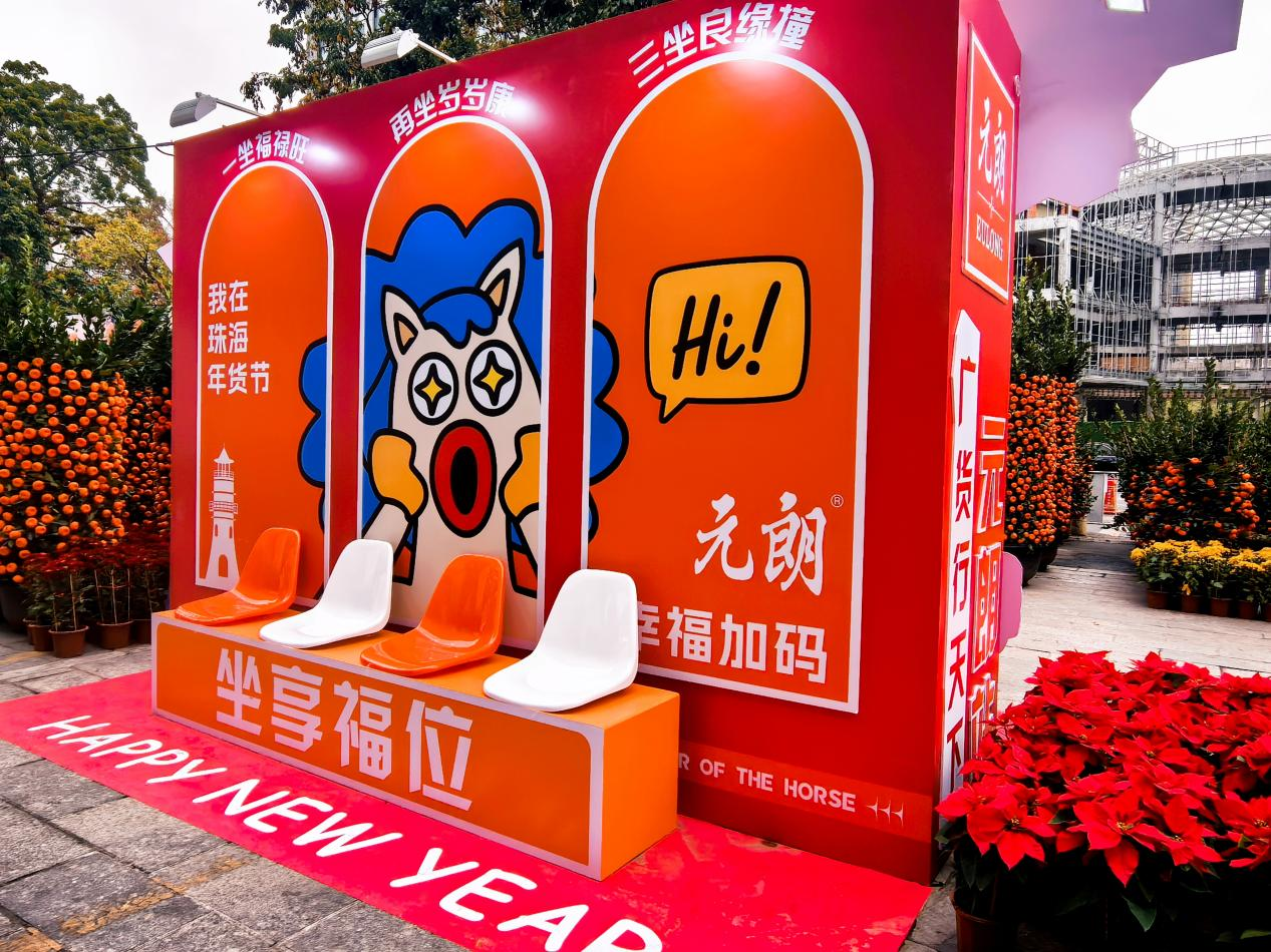 紧随大桥专场活动,2 月 7 日-16日的 2026 珠海新春年货大集上,元朗食品再次以广货代表身份登场,在香洲区名悦城及上冲泰锋电器活动现场打造元朗“坐享福位” 春节主题打卡区,以 “扫一扫,把元朗福袋带走” 为核心互动主题,融入马年专属美好寓意,成为集市中极具人气的打卡点。