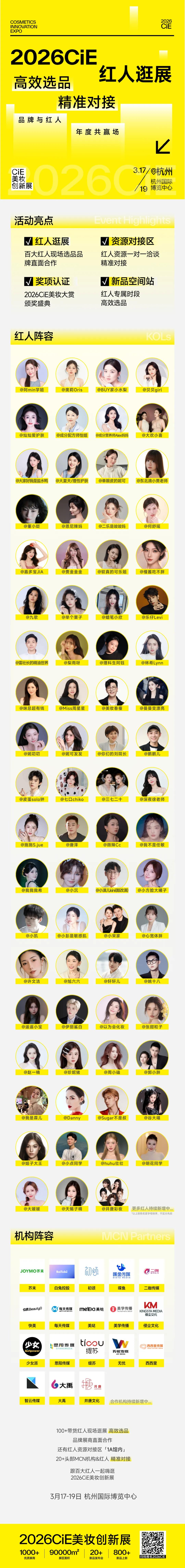 2026CiE现场,100+覆盖细分赛道的带货红人,组成「CiE专业选品团」,一众成分党、美妆博主、测评达人等将亲临展位选品,让对的品牌、对的产品、对的红人,在这里高效相遇,精准共赢。