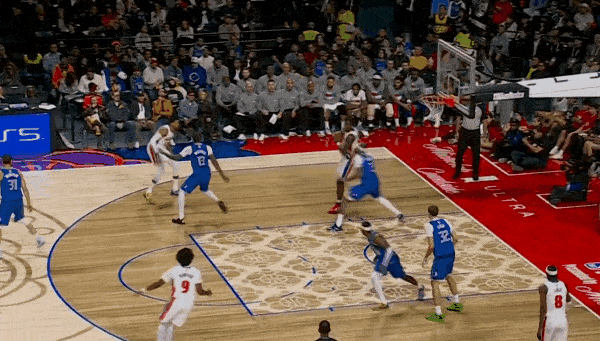 NBA常规赛,活塞对阵独行侠的比赛正在进行中。比赛的第二节,杜伦背身单打转身打进2+1,活塞打出一波14-2。