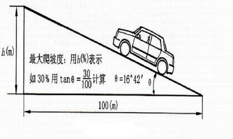 车辆类型 最大爬坡度(百分比) 大约对应角度 代表性车型或说明