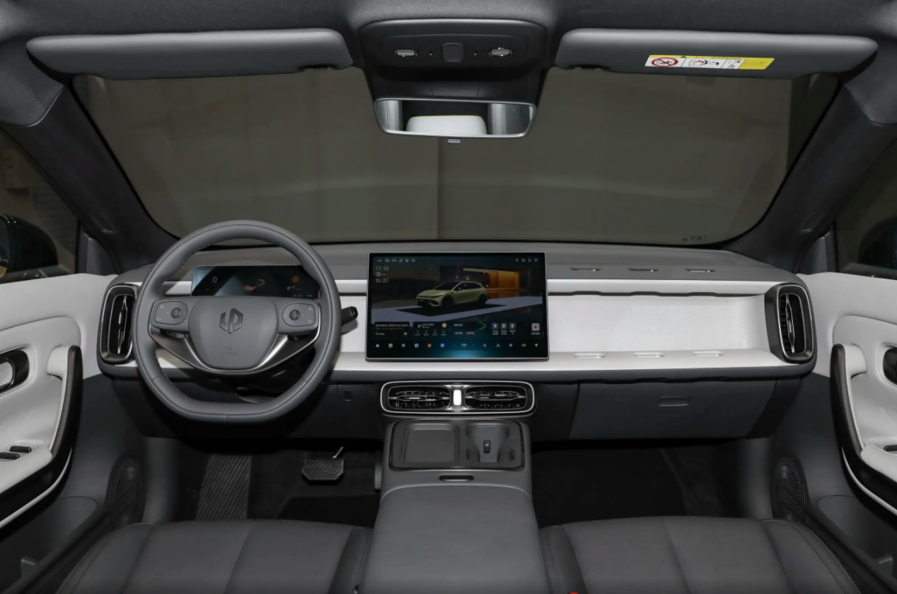坐进车内,零跑Lafa5的中控布局延续了零跑B01的设计方案,所以期待已久的内饰在公布之后,似乎也没有带来太多的惊喜。不过有一说一,副驾个性化的开孔设计,也确实给用户带来更丰富的用车体验。尺寸足够大的悬浮式中控屏,也能给驾驶者提供不错的操作体验,而且在车顶部分,零跑Lafa5的全景天幕也具备配套的电动遮阳帘,而这也足以证明新车的头部空间还是非常宽裕的。另外在内饰用料上,零跑Lafa5的顶棚,以及座椅均采用了真皮+麂皮绒等材质,这些也都有提升车内的年轻运动氛围。