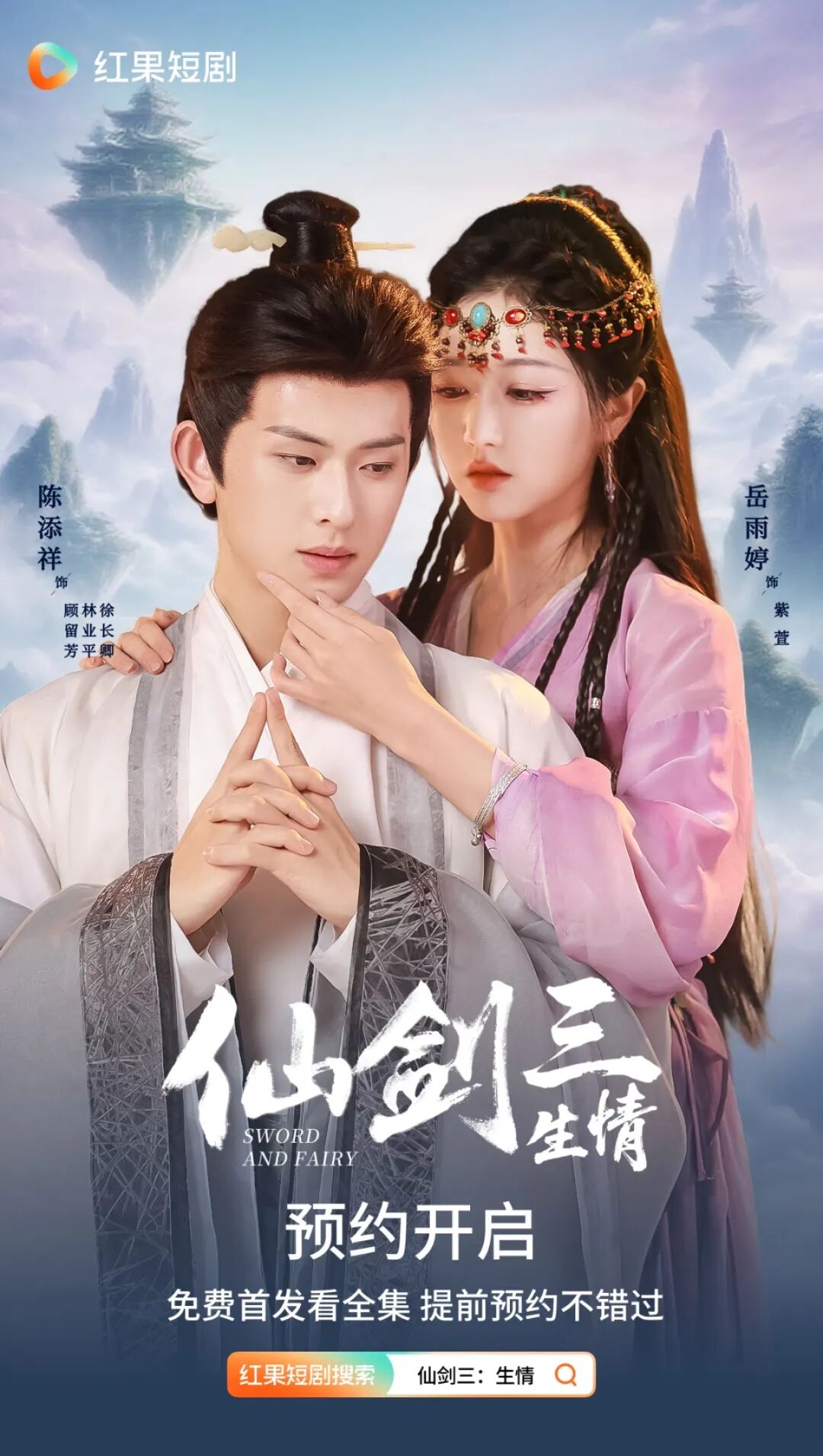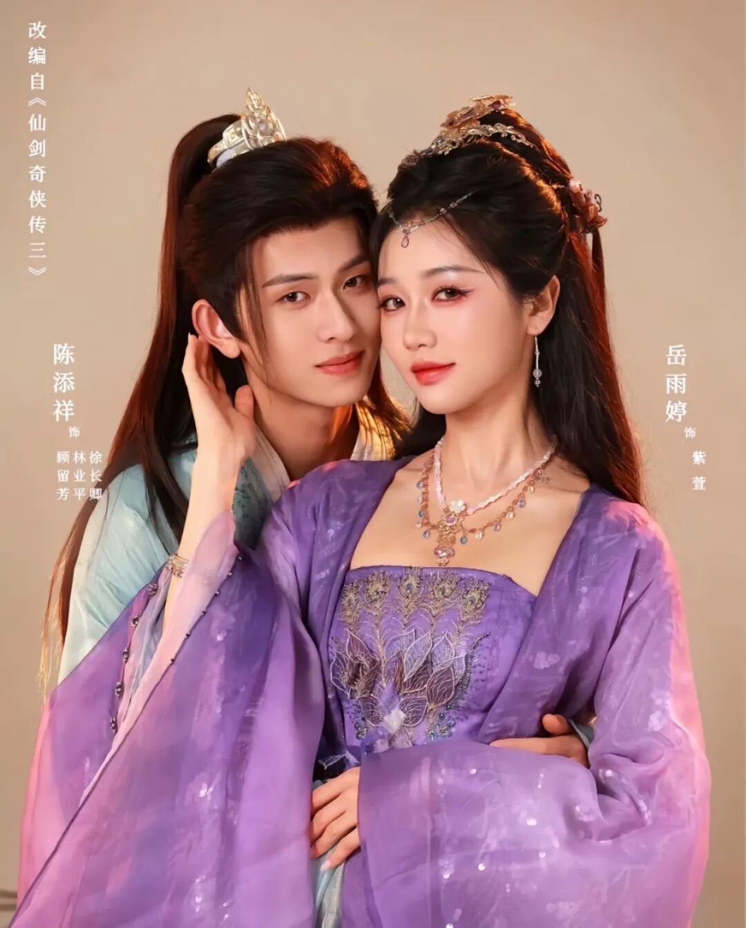 差不多同一时间,《仙剑三》开机,陈添翔搭档岳雨婷,饰演白豆腐和紫萱。