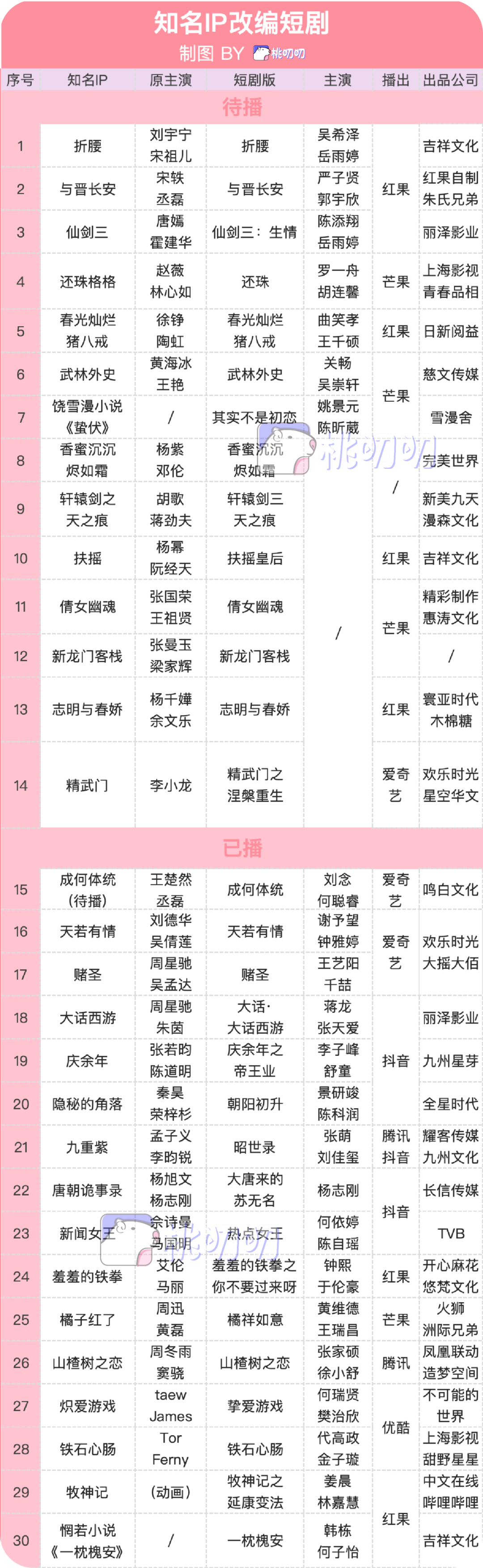 短国迎来大IP翻拍潮,热闹程度仿佛换乘恋爱。