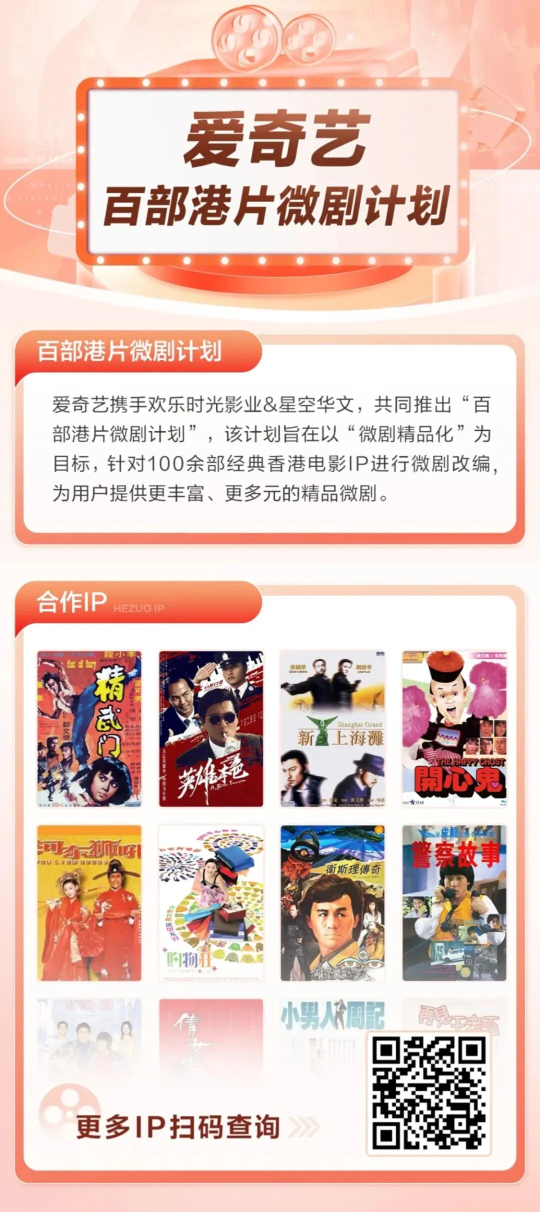 后有爱奇艺推出「百部港片微剧计划」,携手欢乐时光影业、星空华文共同推出,《英雄本色》《警察故事》《胭脂扣》《武状元苏乞儿》等IP都在其中。