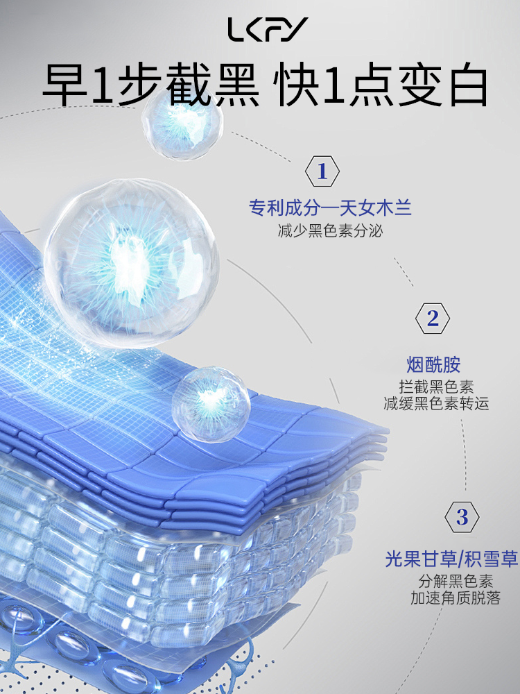 经典组合无敌:爽肤水、精华液、祛斑霜,随便一用就是王炸。其中爽肤水能迅速补水、打开肌肤吸收通道,助后续精华液和祛斑霜发挥作用。精华液含多种珍贵植萃精华,深入肌底精准打击黑色素,从根源解决色斑问题。祛斑霜可在肌肤表面形成保护膜,锁住水分和营养,持续淡斑。三者搭配,效果相得益彰,让肌肤短时间焕白。