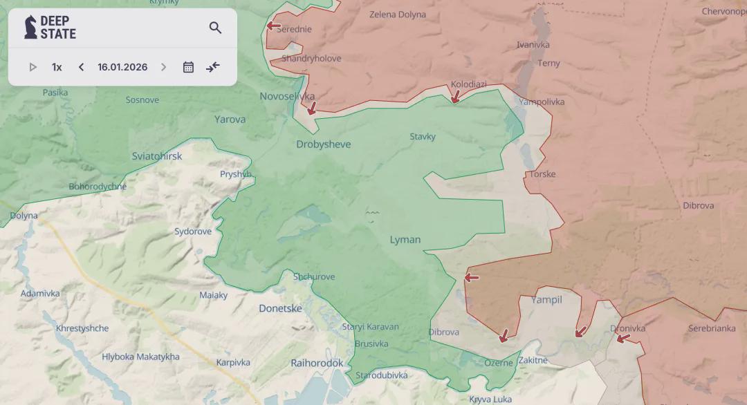 截至2026年1月15日晚,尽管天气恶劣,俄"西部"部队集群的分队仍继续向顿涅茨克的斯维亚托戈尔斯克市移动。