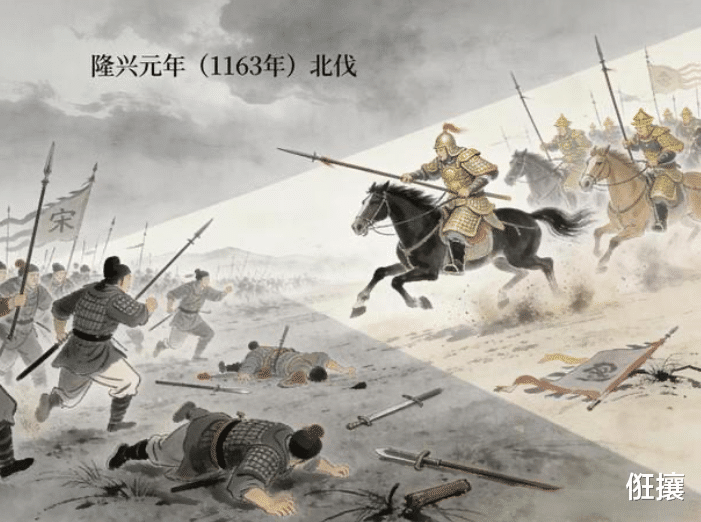 第四,发动隆兴北伐,尝试收复中原失地。隆兴元年(1163年)四月,在主战派的推动下,孝宗径自绕过三省与枢密院,直接向张浚等将领下达北伐诏令,正式发动隆兴北伐。北伐初期,宋军兵分两路,李显忠率部攻克灵璧,邵宏渊攻取虹县,随后合力拿下宿州,捷报传遍临安,极大地鼓舞了宋军士气。但由于前线将领不和(邵宏渊与李显忠争功反目,消极怠战)、后勤薄弱、士兵军纪松弛,金军主力反扑后,宋军在符离遭遇惨败,北伐主力崩溃,隆兴北伐陷入困境。