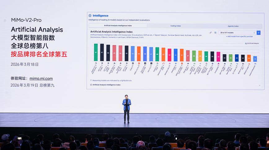 雷军同时宣布,小米正式发布三款自研大模型:面向Agent时代的旗舰基座模型Xiaomi MiMo-V2-Pro、全模态大模型Xiaomi MiMo-V2-Omni和语音大模型Xiaomi MiMo-V2-TTS。其中Xiaomi MiMo-V2-Pro在全球权威大模型综合智能排行榜 Artificial Analysis上位列全球总榜第八、按品牌排名全球第五,排名超过xAI的Grok。