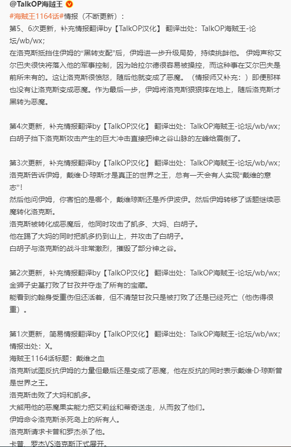 我们知道本周即将更新海贼王最新一期的漫画1164话,目前漫画情报也已经更新,本话标题为”戴维一族",看来这一话的主要内容就是讲述戴维一族了!