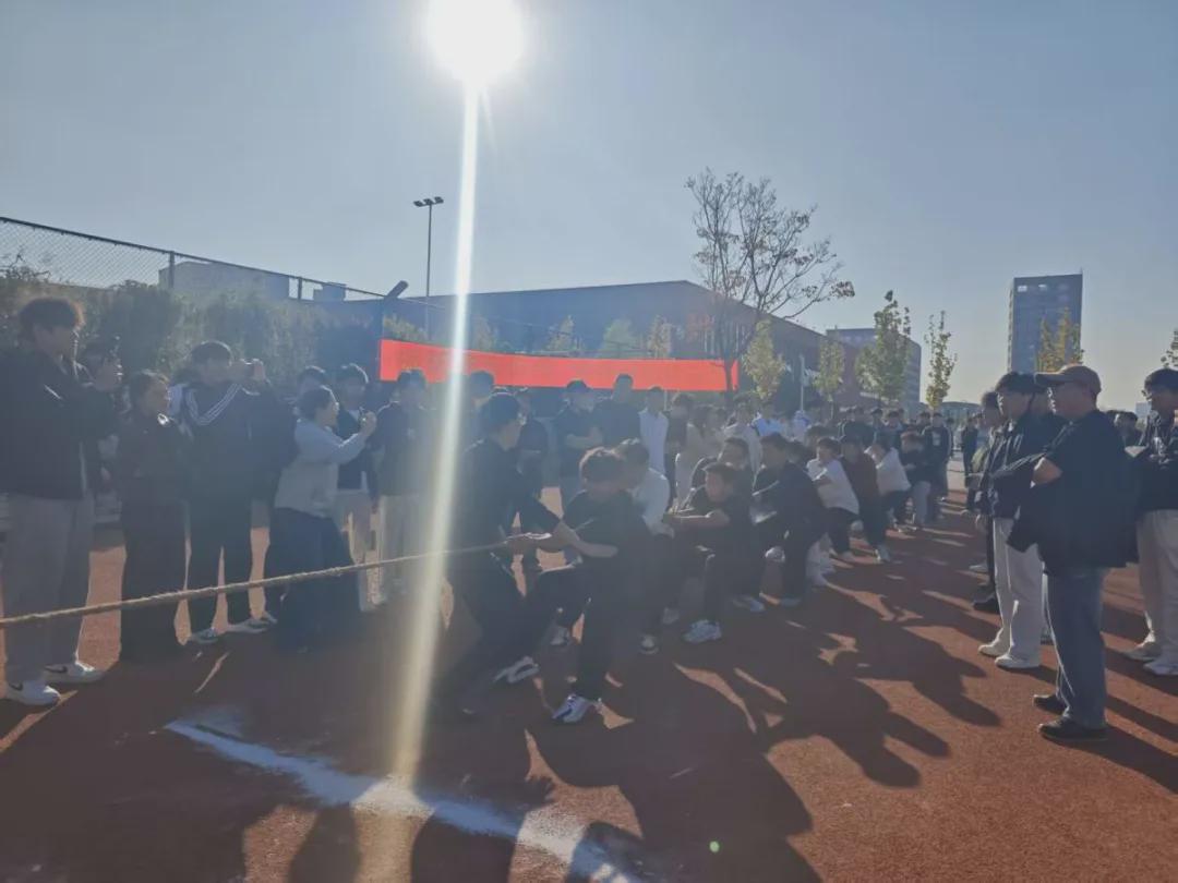 赛场上,每一支队伍都展现出了昂扬的斗志与不懈的拼搏精神。队员们紧握长绳,脚蹬实地,身体后倾,眼神坚定而执着。随着裁判一声令下,大家心往一处想、劲往一处使,肌肉紧绷间迸发着无穷力量,汗水顺着脸颊滑落,却丝毫没有动摇他们坚持到底的信念。无论是势均力敌的拉锯战,还是速战速决的攻坚战,队员们始终咬紧牙关、绝不退缩,用默契的配合与顽强的毅力对抗每一个回合,充分展现了当代大学生迎难而上、团结协作的精神风貌。场下,各学院啦啦队也毫不示弱,加油声、口号声此起彼伏,为参赛队员们注入了源源不断的动力,成为赛场上一道温暖而有力的风景线。