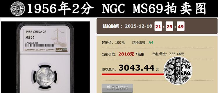 再来说说第二枚,那就更加厉害了,一枚1956年的2分硬币,同样在12月18号,拍出了3043.44元的高价,涨幅达到了,让人惊叹的152172倍。