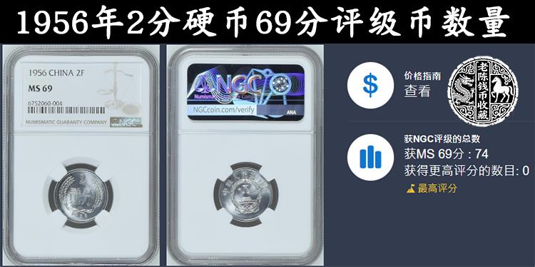 它也是一枚NGCMS69分的冠军分评级币,这个分数56年2分硬币数量相对多一些,有74枚。