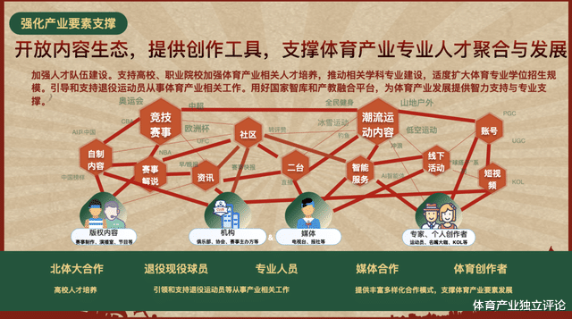 31号文提出,到2030年,要培养一批具有世界影响力的体育企业和体育赛事,体育产业总规模超过7万亿。为了实现这一总体要求,该文在扩大体育产品供给、激发体育消费需求、壮大体育经营主体、强化产业要素支撑等方面给予了具体的指导。