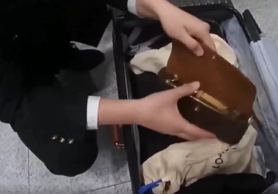 经查验,在旅客行李箱、手提袋中查获奢侈品挎包、围巾、首饰、腰带等共计30件物品,价值约40.6万元。