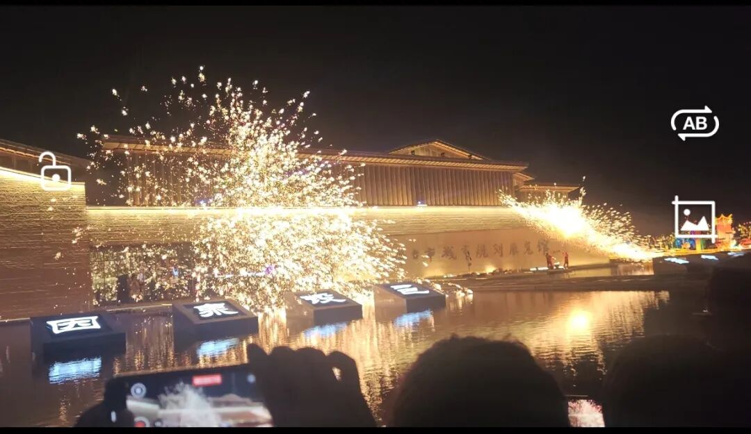 打铁花,背景和水面都很棒