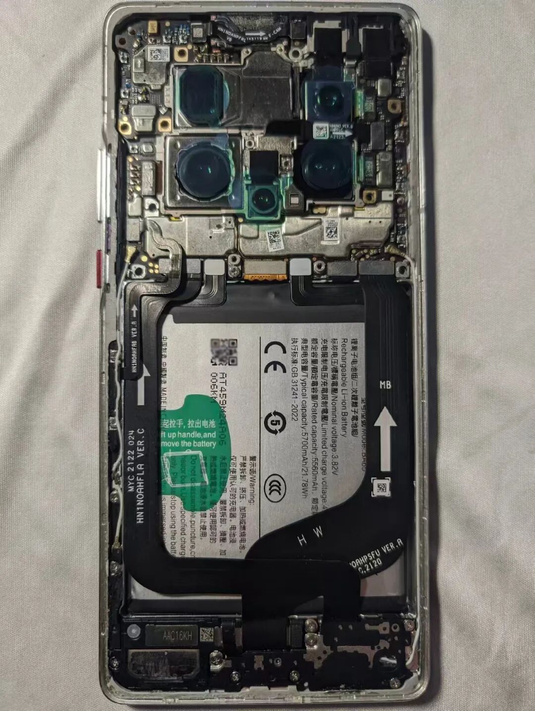 然后将这块魔改电池放进Mate40 Pro就行了,只要会拆后盖就行,不需要引导开机,即装即用。相比原装4400mAh的容量,碳硅新电池提升了1300mAh,续航时间会明显提升。