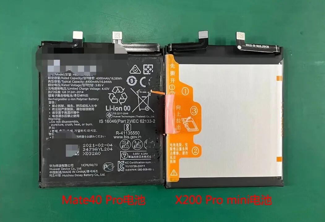 目前民间的魔改方案,是将Mate40 Pro更换X200 Pro mini的碳硅负极电池。这是去年10月vivo发布的手机,已经用上了5700mAh的蓝海电池,也就是碳硅负极电池。关键是,它俩电池三围尺寸几乎一致,可以平替。