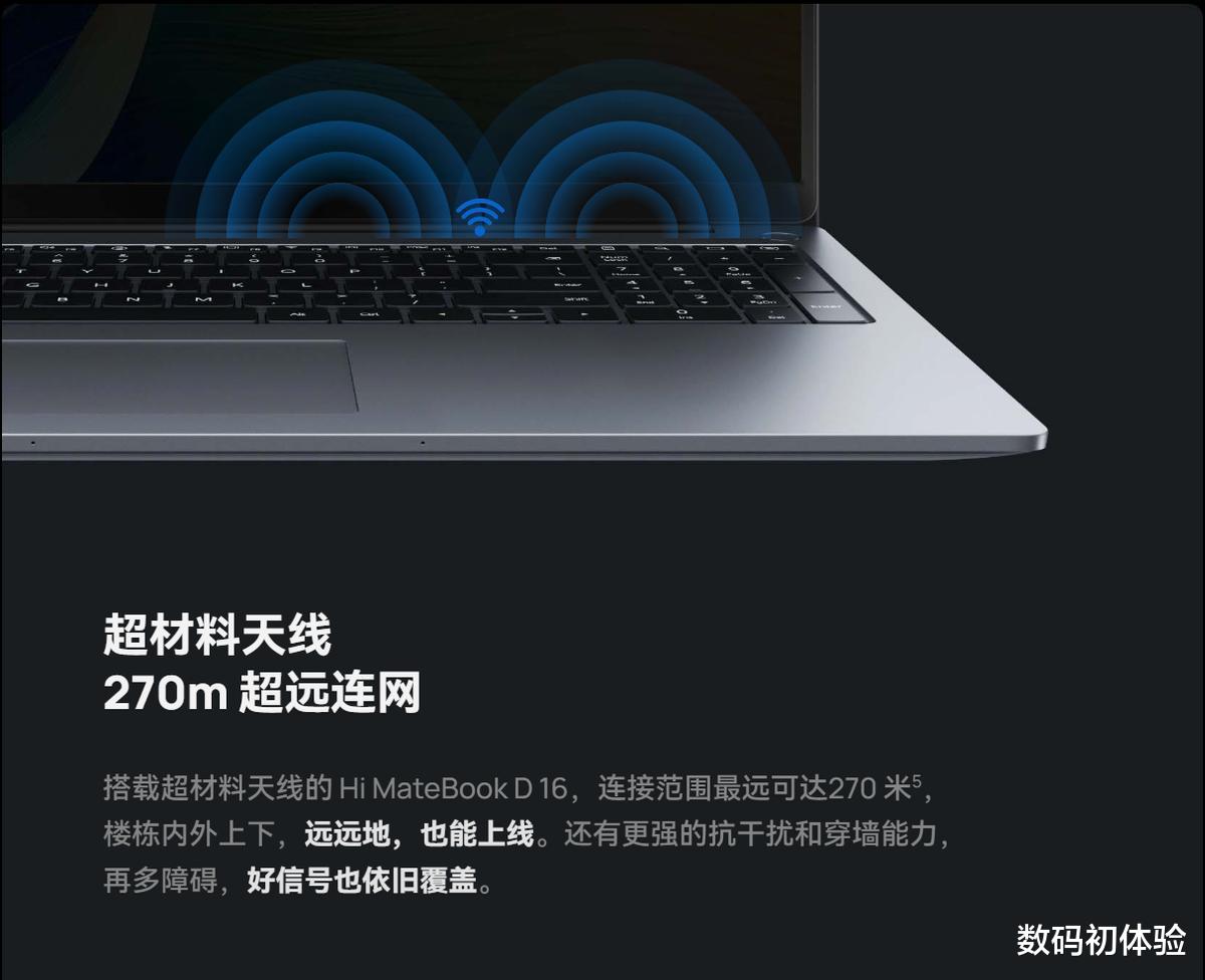 解决了内部的流畅问题,Hi MateBook D 16还为用户铺设了一条连接外部世界的“高速路”。针对办公室角落、咖啡馆多人联网的公共区域等Wi-Fi信号不佳的场景,它配备了“秘密武器”——超材料天线。这项技术最远可实现270米的超远距离连接,能有效解决有信号连不上的“假信号”问题,让你的网络体验始终稳定高速。