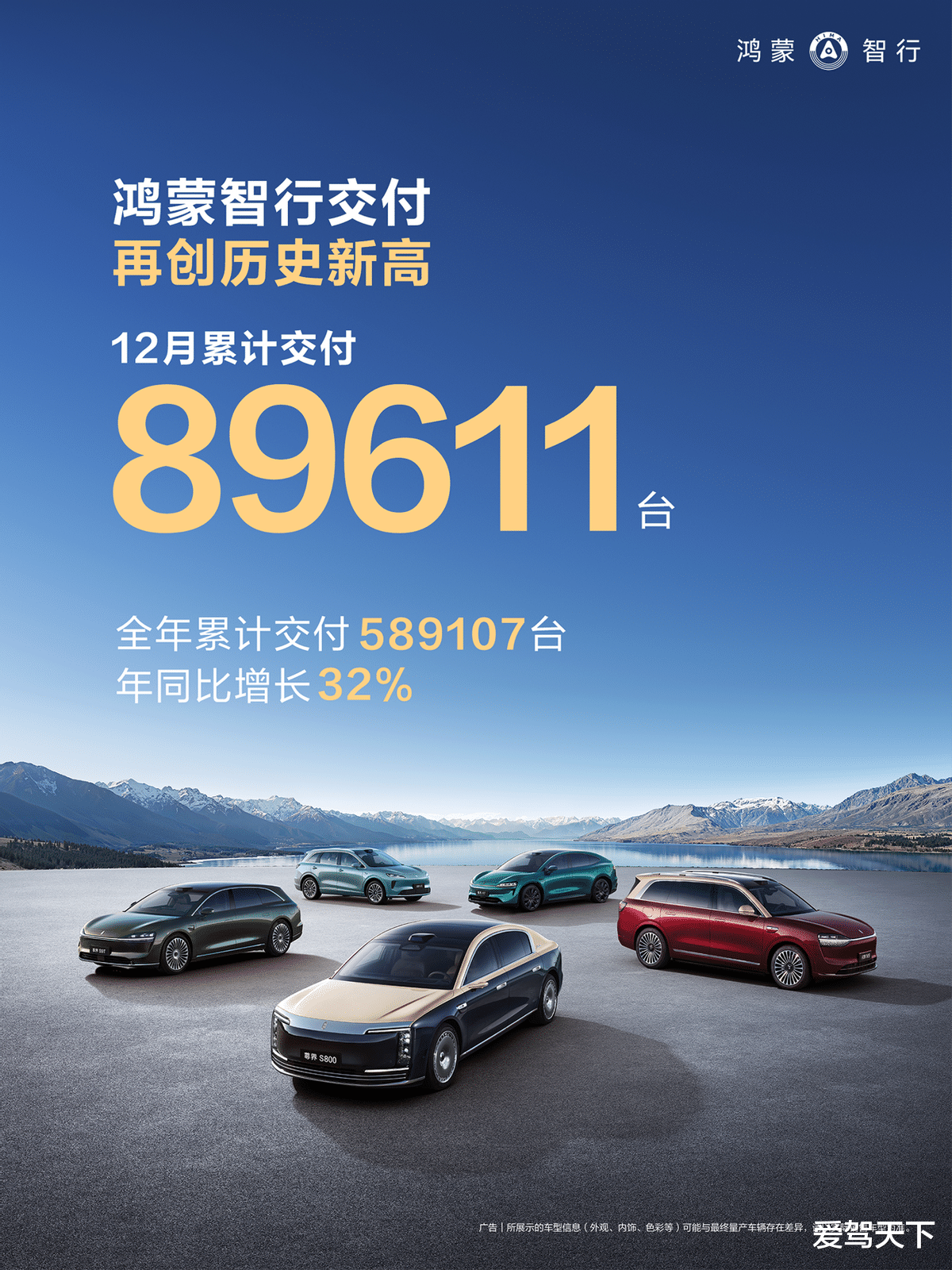 鸿蒙智行:百万目标完成近六成12月,鸿蒙智行交付量达89,611辆,不仅延续了此前的增长势头,实现了月度交付“三连涨”,也创下年度单月交付新高。2025年全年,鸿蒙智行累计交付589,107辆,同比增长32%。对比年初设定的100万辆年度销量目标,达成率约58.9%。