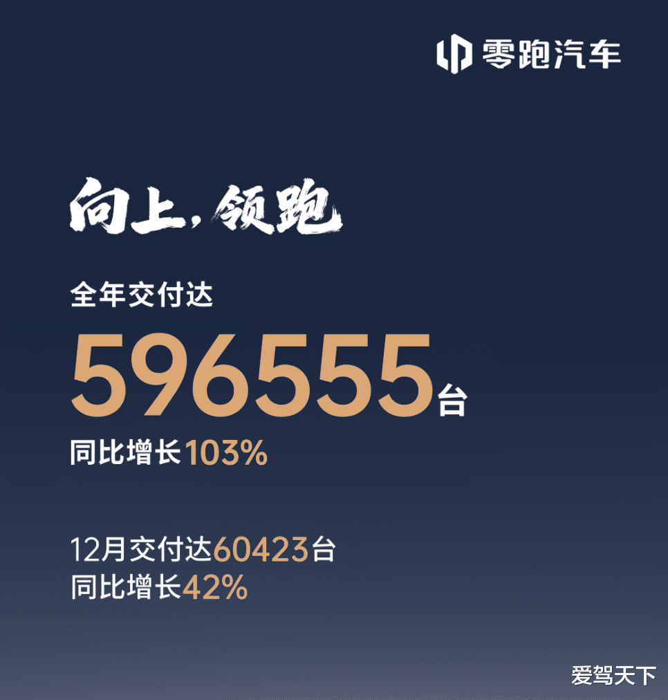 12月,零跑汽车交付量达60,423辆,同比增长42%。相比于11月70,327辆,少了9904辆,但对于已经提前完成2025年度销量的零跑汽车来说,这个成绩还是相当亮眼的。2025年全年,零跑汽车累计交付596,555辆,同比增长103%。