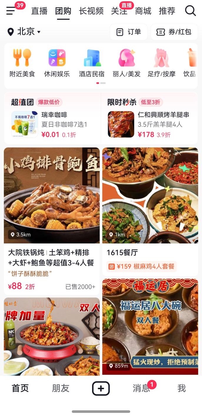 鸿蒙版抖音,你是真懂我啊!天天盼望着上线的“团购”功能终于上线了!这波更新我直接吹爆!要是有感兴趣的美食或玩乐项目,直接点击页面顶部的“团购”专区搜索就能完成下单,方便又实惠,从眼馋被种草到下单付款,全流程一气呵成。