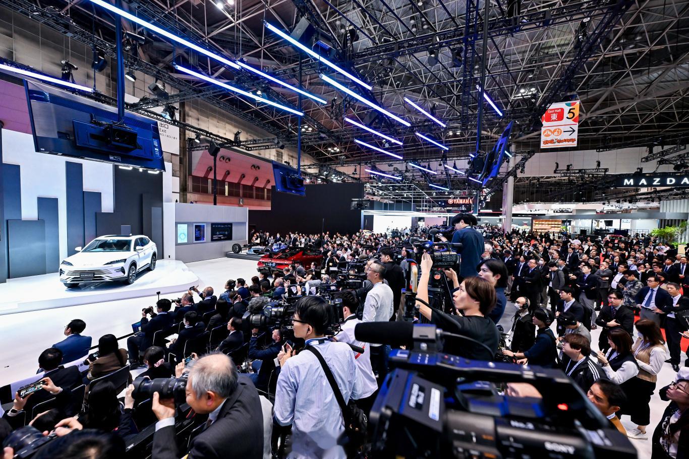 毫无疑问,比亚迪是本次车展的主角之一。光看图4那一圈又一圈的记者,就能感受到它的热度——几乎是里三层、外三层。之所以吸引这么多关注,也许是因为比亚迪带来了自己的 K-EV —— BYD RACCO。