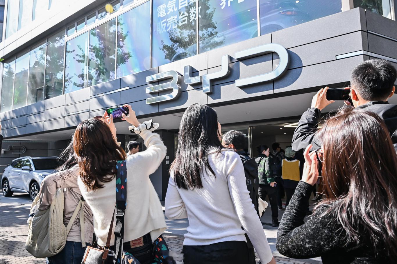 当然,比亚迪也有足够的底气。看下图,那家东京门店正面赫然写着“全球新能源车销量冠军”。这标语是不是太不内敛了?其实也不是——因为对面的奥迪门店,同样挂着一句销冠的标语,只不过定语多一些:“Q4 e-tron,日本2023年德国品牌纯电车登记量第一。”