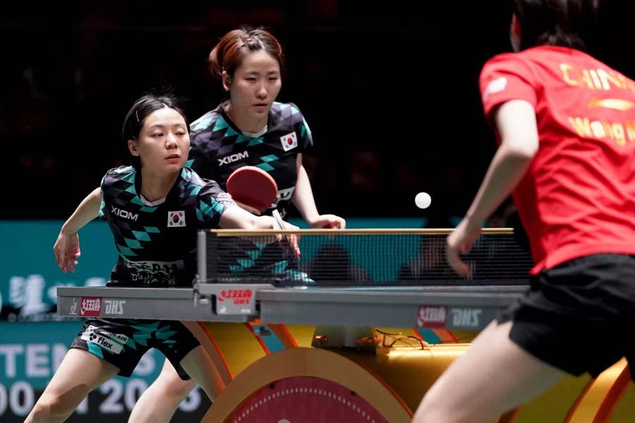 第四盘打得最惊险,尤其是女双。韩国派出崔孝珠/李恩慧的全新组合,对手一左一右,崔孝珠还用的是难缠的生胶打法。她们首局打出6比0的开局,最终拿下该局,为韩国再得一分。蒯曼/王曼昱也不是省油的灯,第二局开始变阵,落点调整后连扳两局,最终锁定胜局。