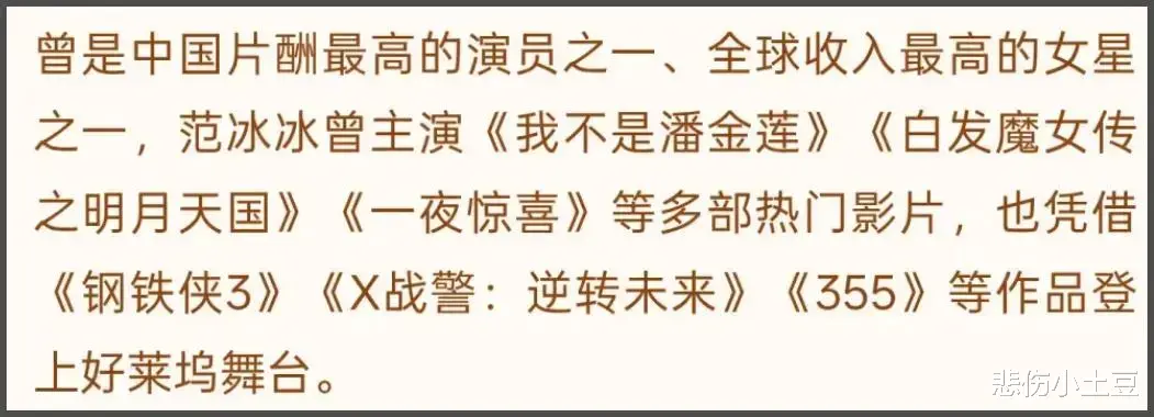 范冰冰也是这其中一员,拿着高片酬享受着观众的支持,连这次采访,外媒介绍范冰冰,也说她曾是中国片酬最高、全球收入最高的明星之一。但一朝落寞就在外网贬低中国观众审美,拍了那么久的中国电影,赚了那么多钱,现在回过头点评起中国电影?