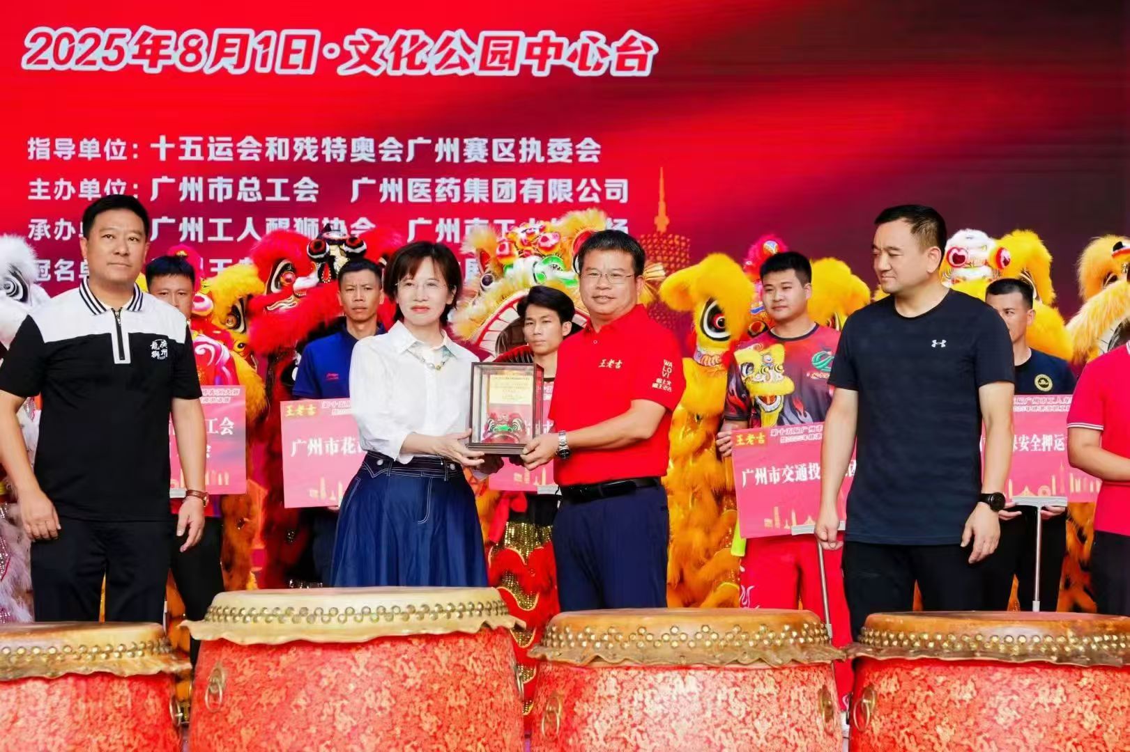 8月1日,正值第十五届全国运动会开幕倒计时100天的重要时刻,广州文化公园中心台上演了一场前所未有的岭南文化盛宴。"王老吉杯"第十五届广州市工人龙狮表演大赛暨2025年穗港澳职工醒狮邀请赛隆重举行,30支龙狮劲旅、100头威风凛凛的醒狮同台竞技,为即将到来的体育盛会奏响最激昂的序曲。