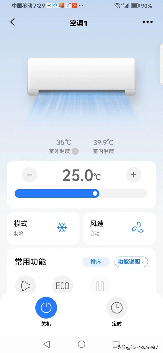 我打开智能手机一看,室内的温度是39.9度,室外的温度是35度,开着空调室内的温度比室外还追,你说这咋能够入睡呢?这是什么原因呢?