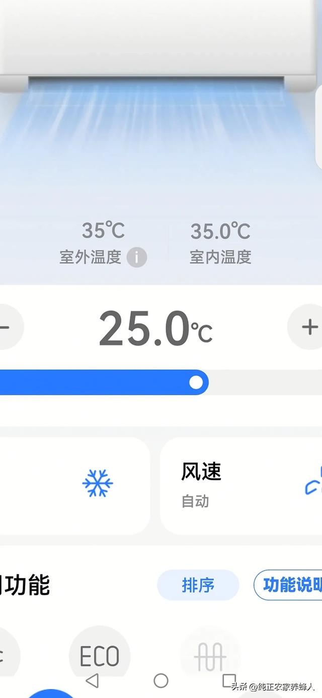 这时候我就把门窗全部打开,并且把室内的台扇也开开了,朝着窗户外吹,结果停了有十几分钟,室内的温度降了下来,室内的温度35度,室外的湿温度35度,又停了十几分钟室内的温度降到了30.5度,这时候我才又开始睡觉,随着室内温度的继续下降,我舒舒服服的开着空调睡了一晚上,并且是在入睡前把空调的温度调到了28度。