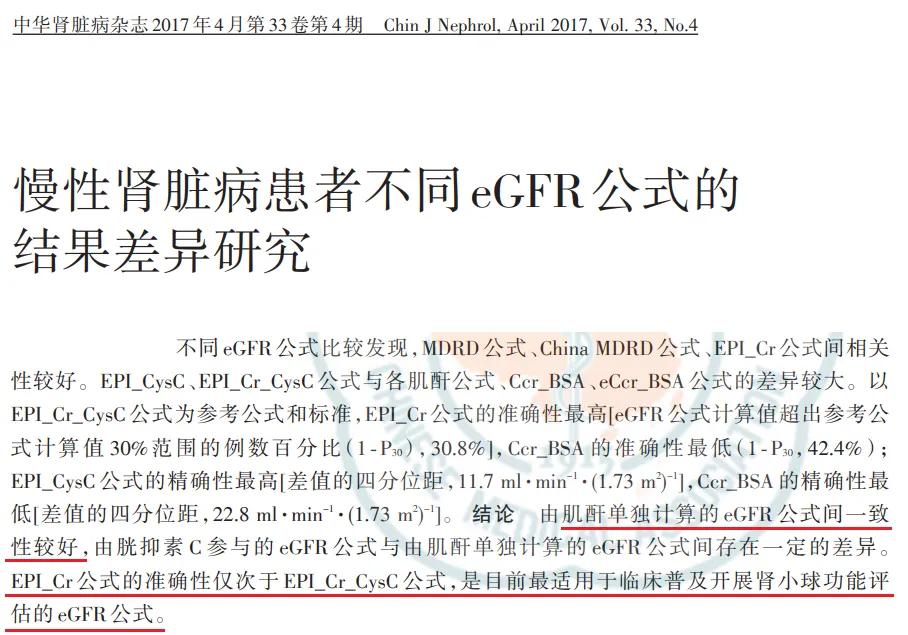 2.这个公式只需要检测血肌酐,使用方便,价格较低,非常适合大规模普及。