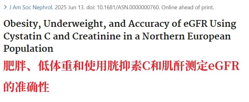 权威杂志JASN近期发表的一项研究也显示:不同BMI人群计算eGFR,肌酐+胱抑素C联合公式相对更准确。