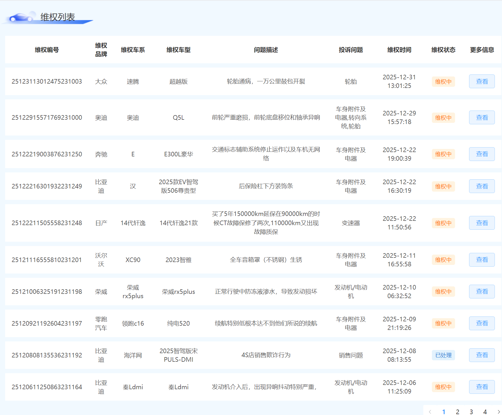 以往车主遭遇车辆续航虚标、车身异响、车漆爆皮、天窗漏水等问题时,常面临厂家与 4S 店相互推诿的困境。车质帮简化维权流程,让维权变得简单高效:车主只需通过微信搜索 “车质帮” 小程序,或登录官网,详细描述问题并上传相关照片、视频作为证据,提交后即可完成诉求登记。