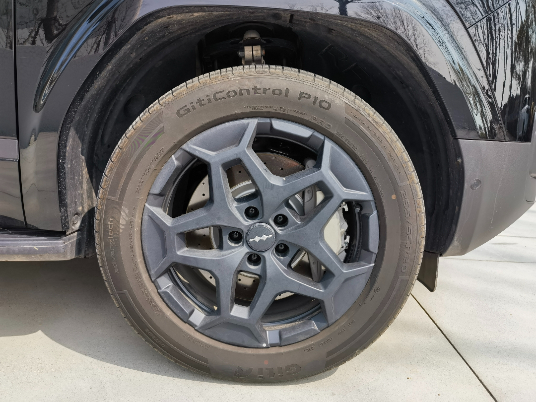 钛7的底盘还不错,前双叉臂后多连杆悬架+云辇系统,舒适性和操控性都还可以。尤其是转向的手感,非常细腻。不得不说,这种传统大厂造的车,在驾驶质感层面上调校的真是无可挑剔。而且它还配备了255/60 R19的轮胎、四活塞卡钳和打孔刹车盘,再加上大量高强度铝合金材质的运用,整体给的东西确实挺多的。