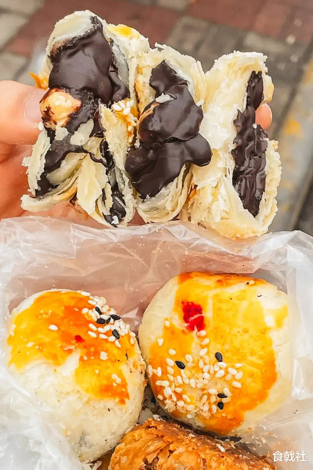 蒸饼儿是甜口的,做成巧克力馅儿倒不算出奇,而巧克力的油酥烧饼,多少有点儿匪夷所思了——但在天津也只是寻常。烧饼层层起酥,咬开来,酥香的饼渣裹上了丝滑柔软的巧克力馅儿,夹杂着香脆的榛子仁。这样的烧饼一般都不会太甜,配一碗皮薄馅精的小馄饨,多放虾皮胡椒面儿,你以为是黑暗料理?这根本就是停不下来的“甜咸永动机”嘛!