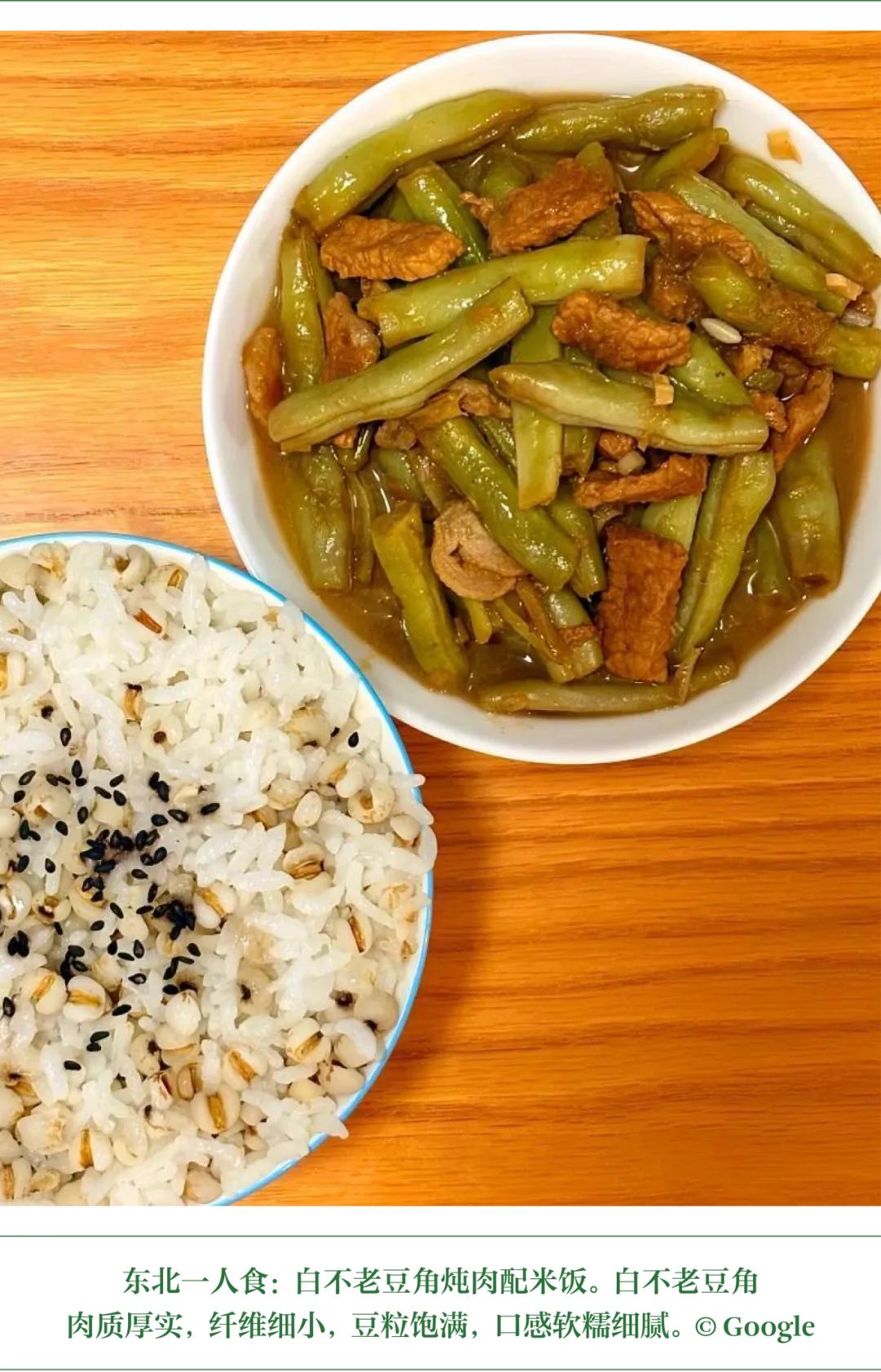 但就是这样的油豆角,却是我最不喜欢的。因为没有喜欢的土壤。当你 18 岁才第一次吃油豆角,喜不喜欢全看运气。前 17 年对架豆的偏好根深蒂固,每一丝都在抗拒油豆角「面糊」的口感。而这恰好是黑吉两省对炖豆角的默认偏好:要用油豆角,还要入口即化。