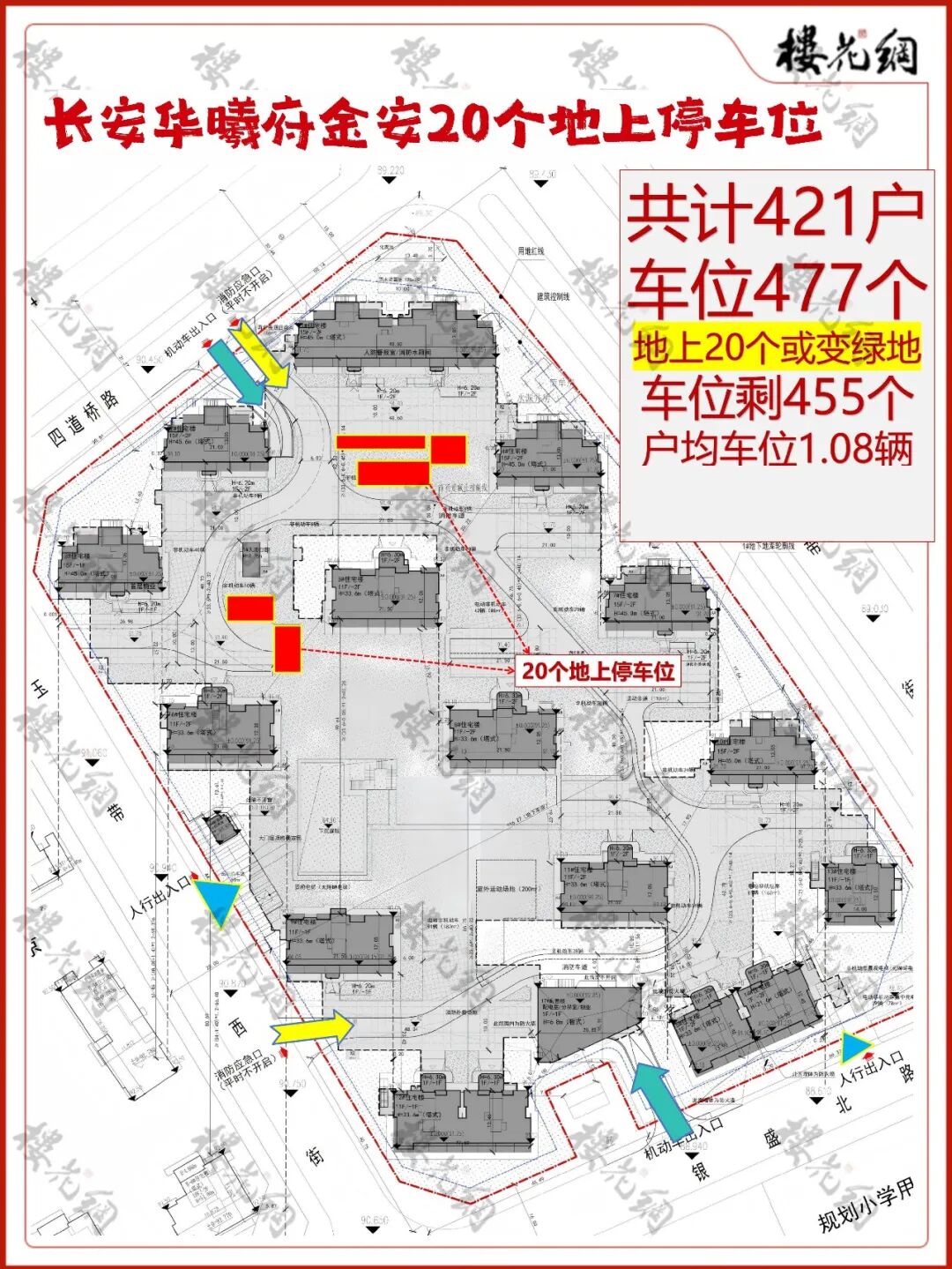如果将地上车位剔除后,长安华曦府金安的车位配比,将变成1.08辆/户——离最低要求,有较大差距。