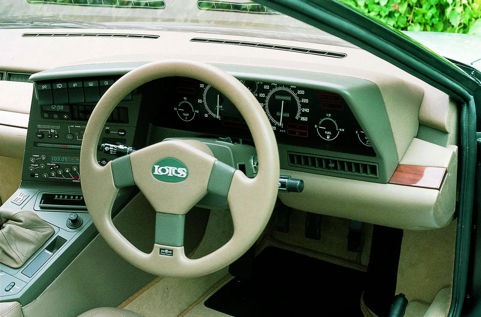 Etna的诞生源于路特斯创始人柯林·查普曼的宏伟构想。早在1978年,查普曼就委托工程师托尼·拉德开发一款全新的V8发动机,代号Type 909。这台排量4.0升的发动机最终输出功率达到335马力,扭矩400牛·米,既要与路特斯家族的四缸发动机保持技术共性,又要实现至少320马力的动力目标。与此同时,路特斯的工程师们正在为F1赛车研发主动悬挂系统,这项技术也计划应用到量产车型上。为了配合这台新引擎,Etna的轴距比Esprit加长了70毫米,整车采用中置引擎布局,风阻系数仅为0.29,在当时堪称出色。