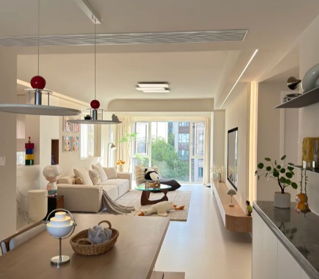 深色亮面地板曾是许多人的执念,以为耐脏,实则每一粒灰尘都无处遁形。反倒是有纹理的哑光灰砖,清晨的碎屑、午后的发丝,都温柔地藏进纹路里,拖把经过时才发现“原来这里掉了饼干屑”。墙面也是,当初坚持的纯白如今总有孩子的指印、猫咪蹭过的痕迹,若是换成米灰或暖调的亚麻色,这些日常的印记便成了墙面的一部分,像一幅慢慢生长的画。