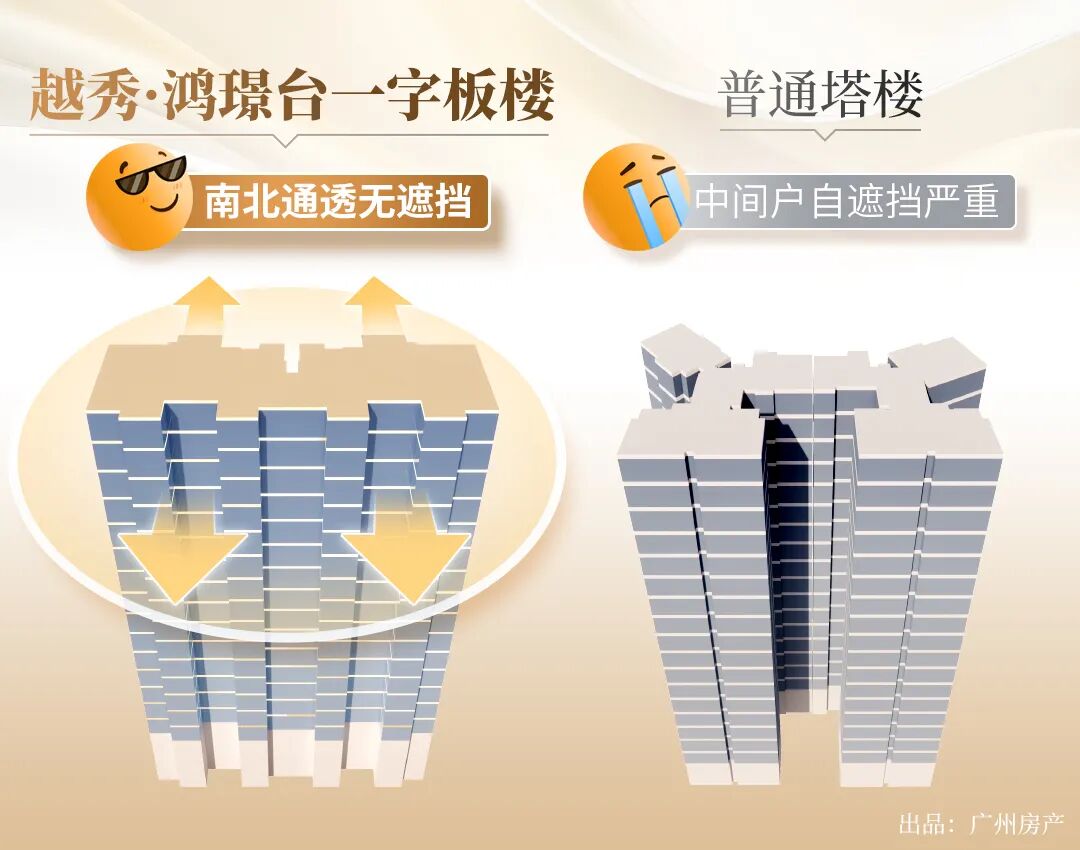 要知道,因为容积率受限,广州有8成房子都是塔楼,一层多户难免有遮挡,很难100%照顾每一户的通风和采光。