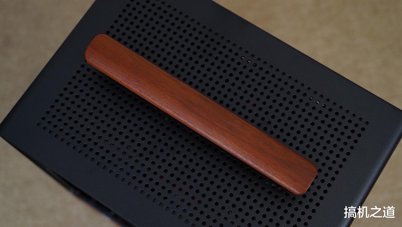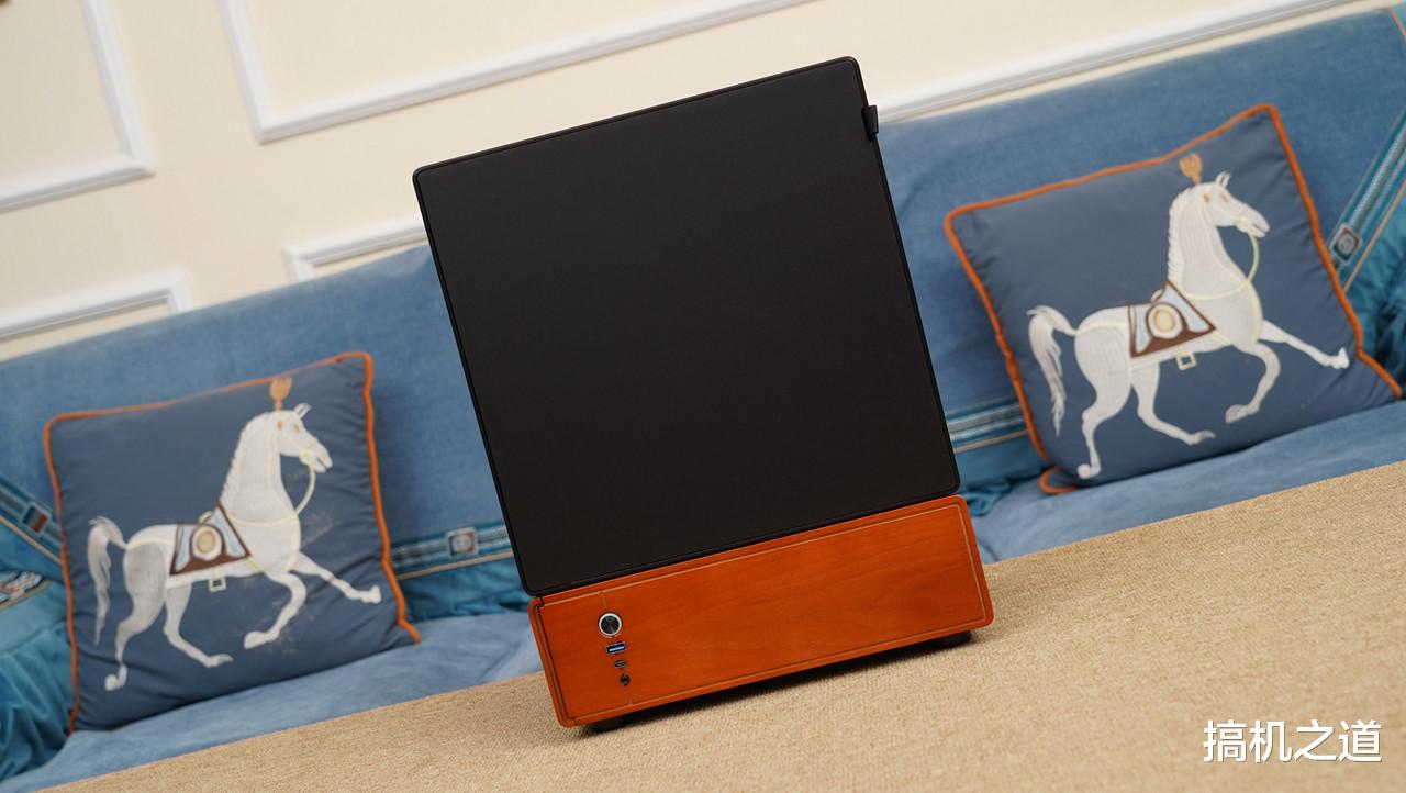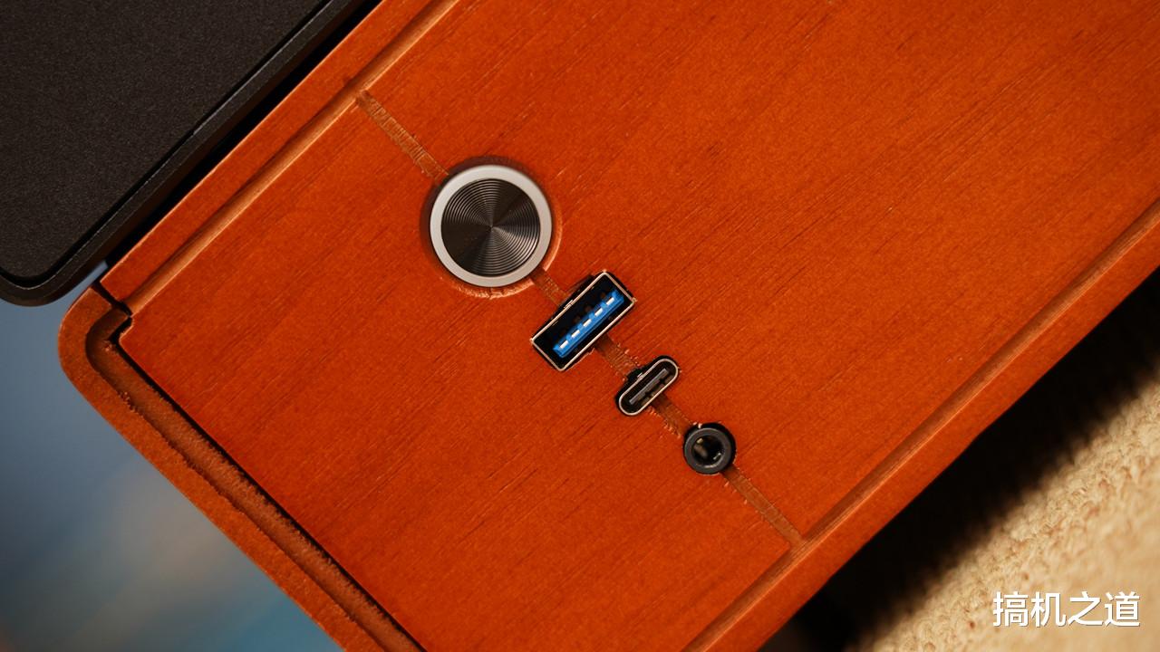 机箱采用上下分仓式设计,上部采用铝合金外壳,下部采用北美黑胡桃实木打造,两种不同材质和颜色的搭配,给人一种独特的质感,能够完美融入到传统中式家具木艺风格之中。