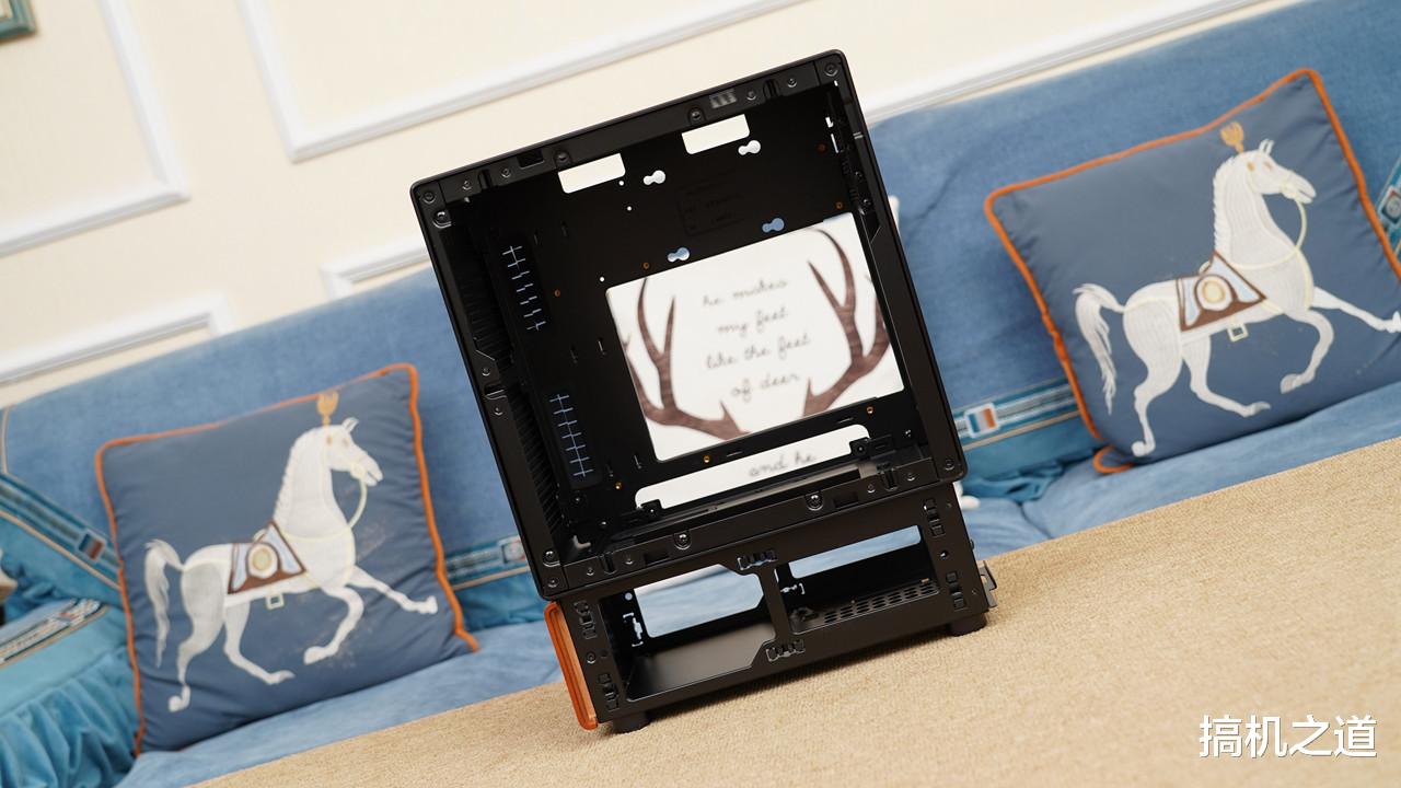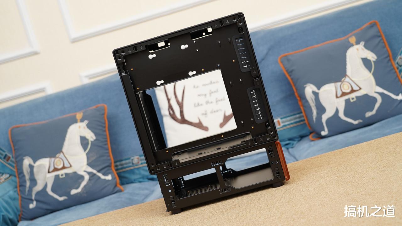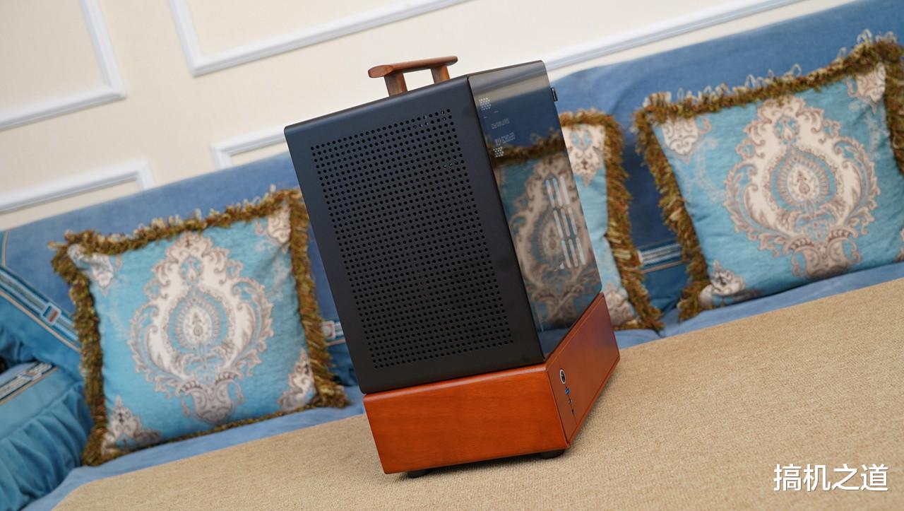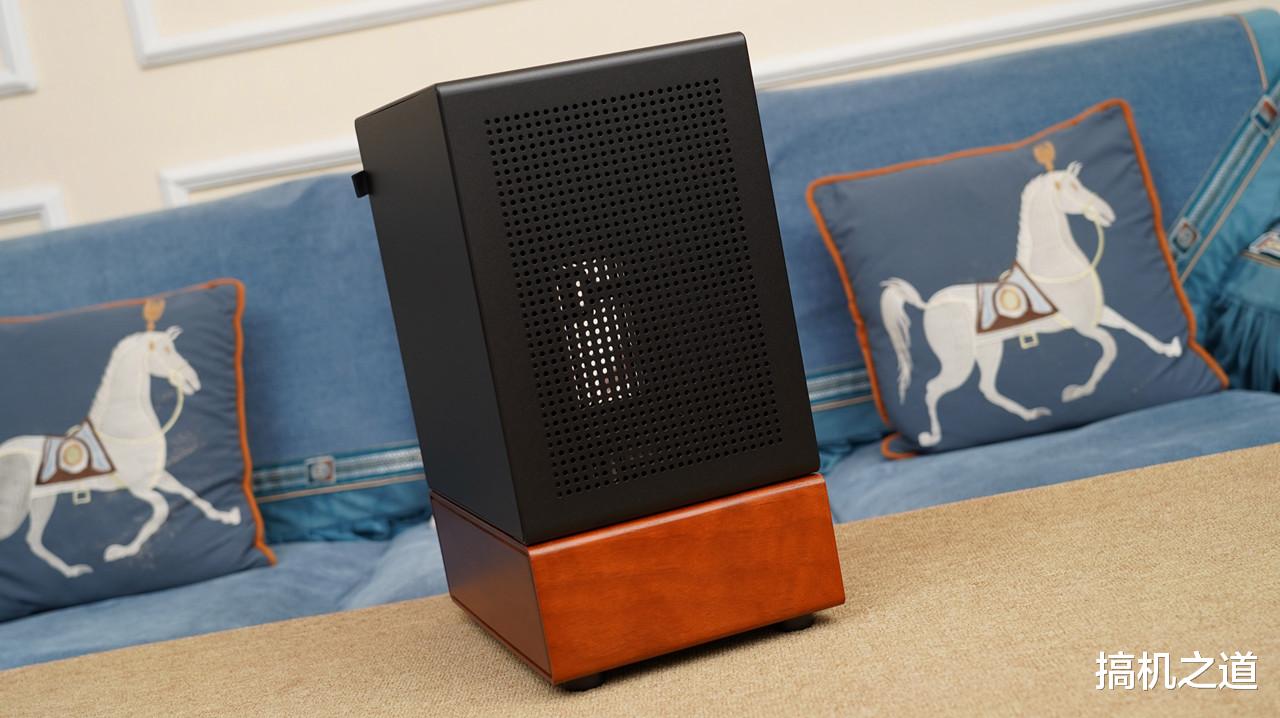 机箱采用上下分仓式设计,上部采用铝合金外壳,下部采用北美黑胡桃实木打造,两种不同材质和颜色的搭配,给人一种独特的质感,能够完美融入到传统中式家具木艺风格之中。