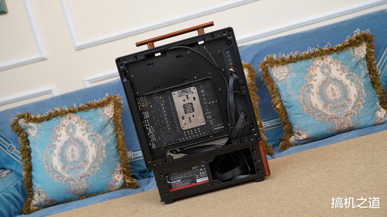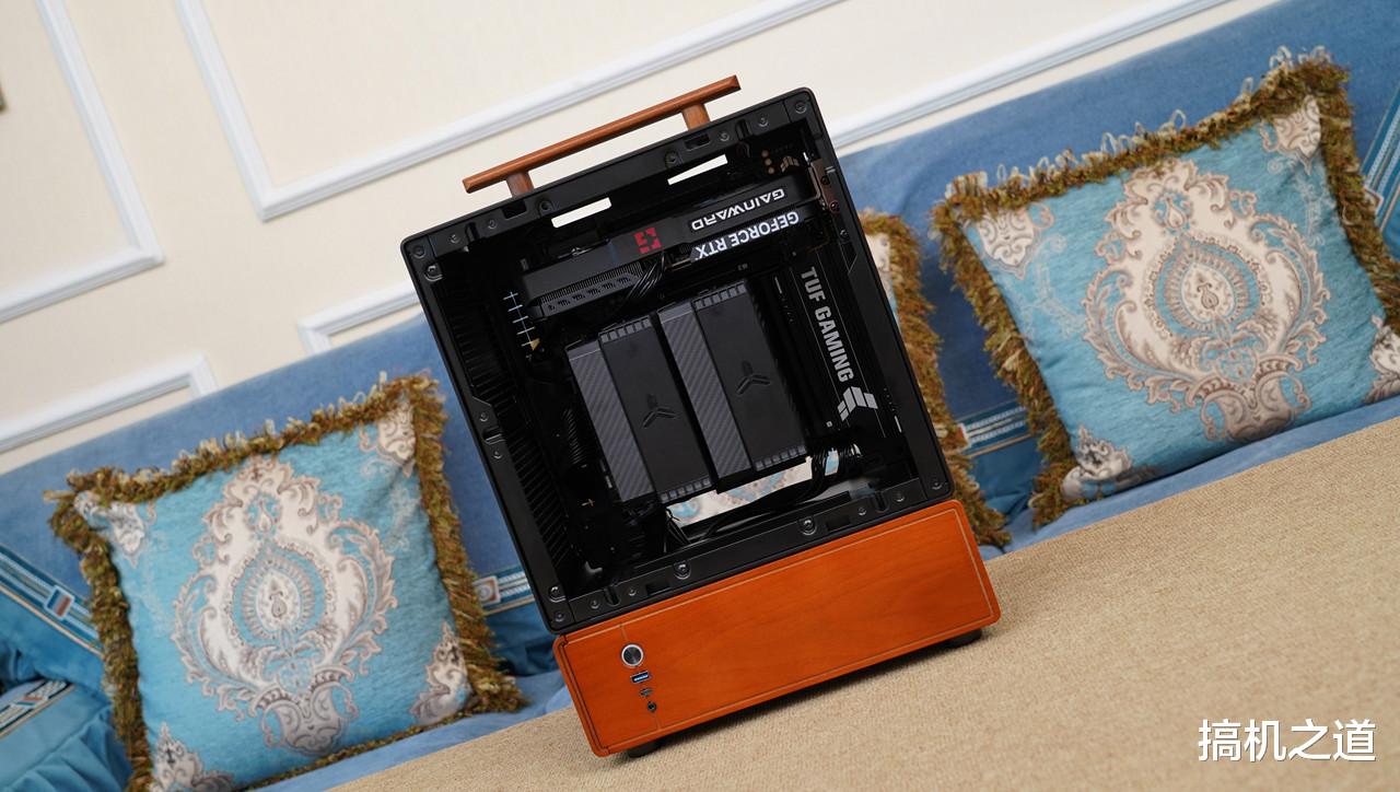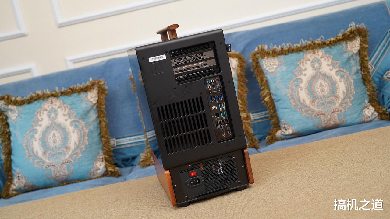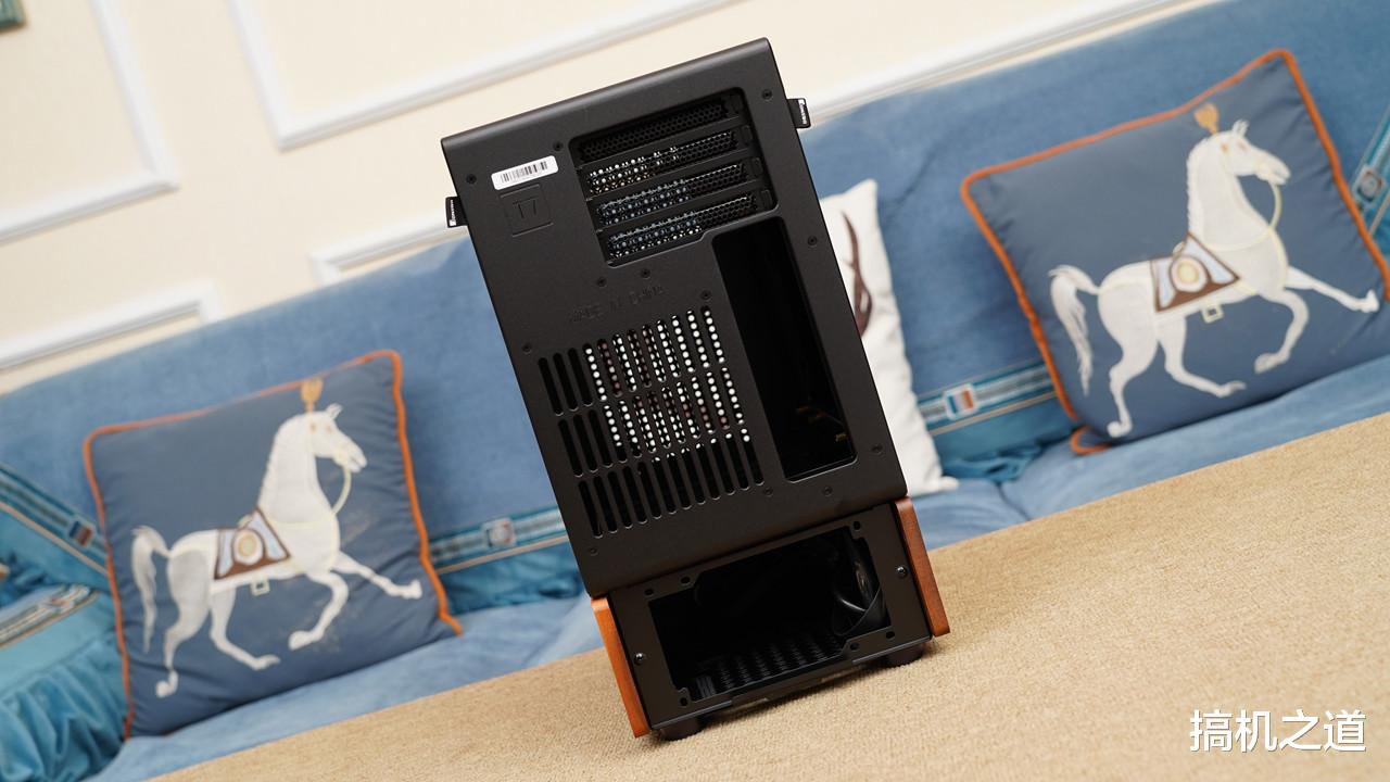机箱采用了乔思伯 T7,该机箱最大的亮点是采用了3mm铝合金外壳+10mm北美黑胡桃实木打造而成,质感非常出色,能够完美的和家居环境融为一体。