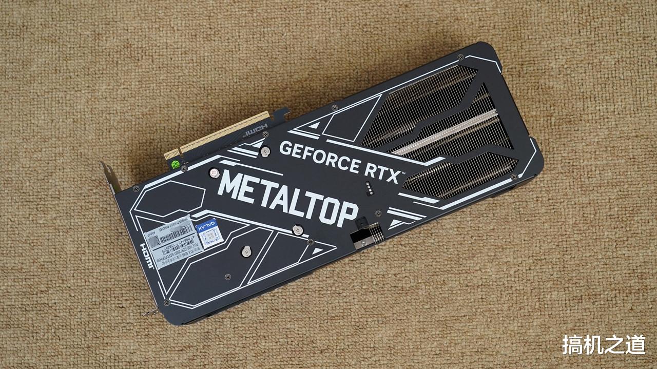 显卡采用了黑色金属背板设计,不仅颜值出众,还能起到保护背面元器件、防止PCB变形的作用。