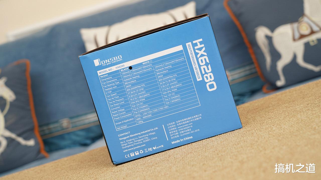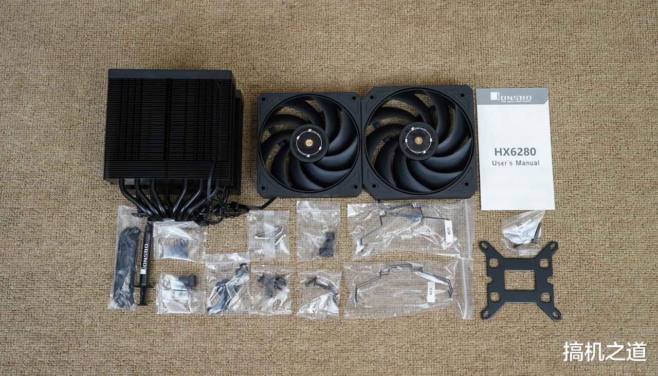 散热器采用了乔思伯 HX6280,该散热器采用6热管+双塔结构+回流焊工艺,最大解热功率可达280W,属于风冷散热器中的佼佼者。